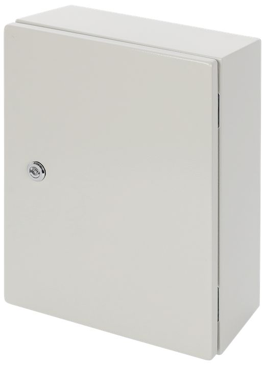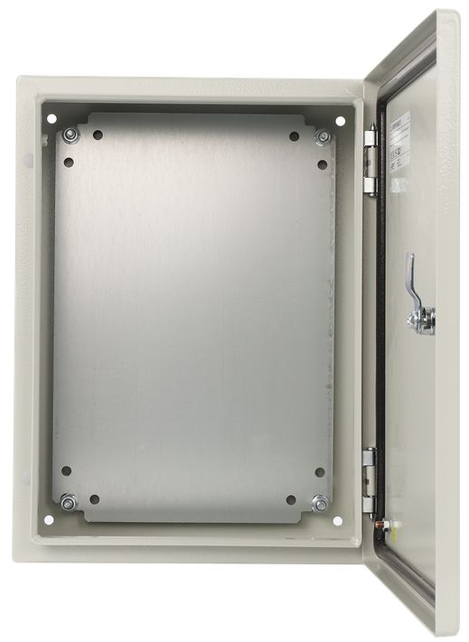 Gehäuse und Tür bestehen aus 1,2 mm starkem Blech, die Montageplatte aus 1,5 mm starkem Blech. Dies gewährleistet eine hohe Widerstandsfähigkeit gegen mechanische Beschädigungen – Widerstandsklasse IK10 (Grad der mechanischen Festigkeit IK).