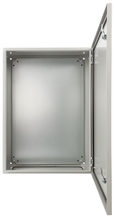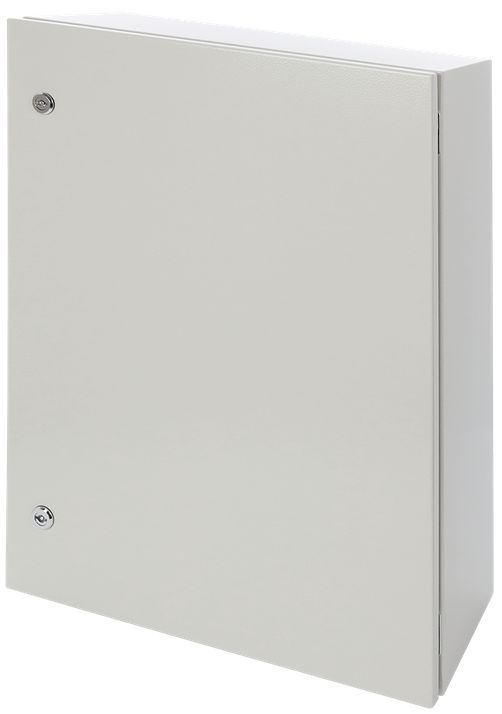 Gehäuse und Tür bestehen aus 1,2 mm starkem Blech, die Montageplatte aus 1,5 mm starkem Blech. Dies gewährleistet eine hohe Widerstandsfähigkeit gegen mechanische Beschädigungen – Widerstandsklasse IK10 (Grad der mechanischen Festigkeit IK).