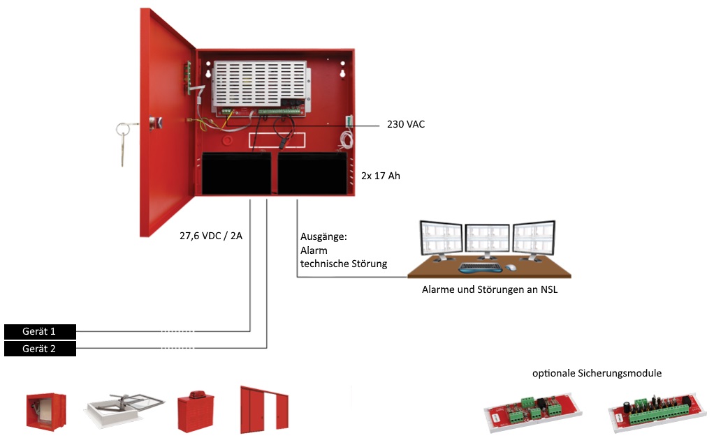 - 2×7 Ah Netzteil für Brandmeldeanlagen