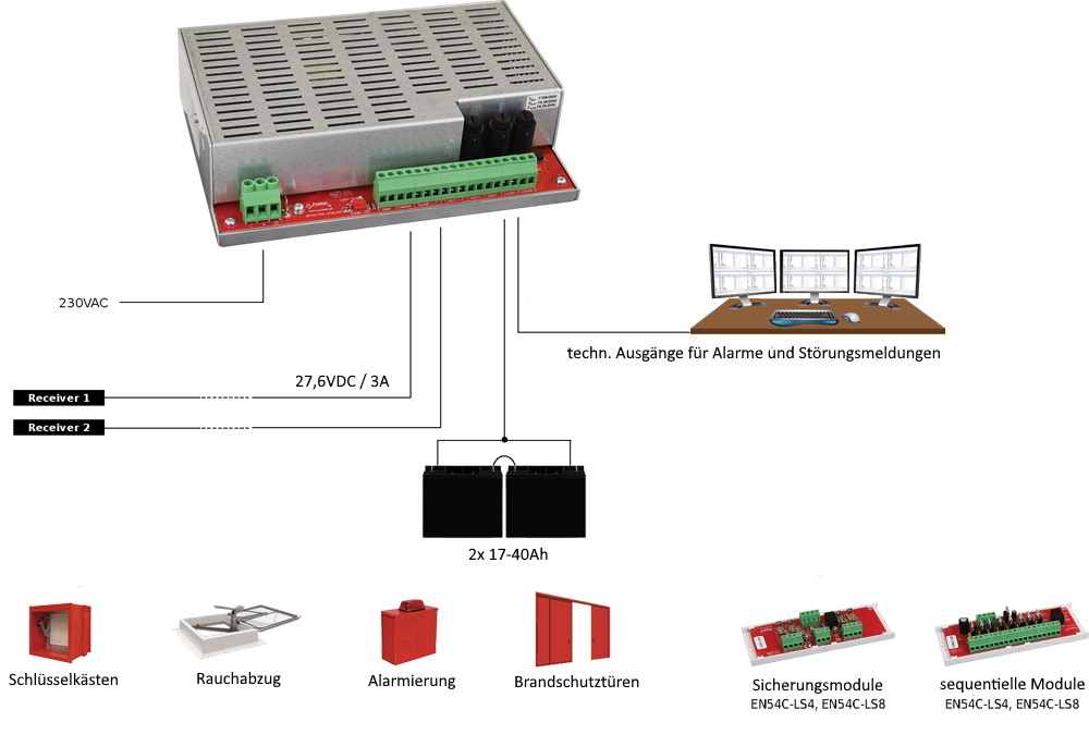 • 2x 17 bis 45Ah Netzteil für Brandmeldeanlagen