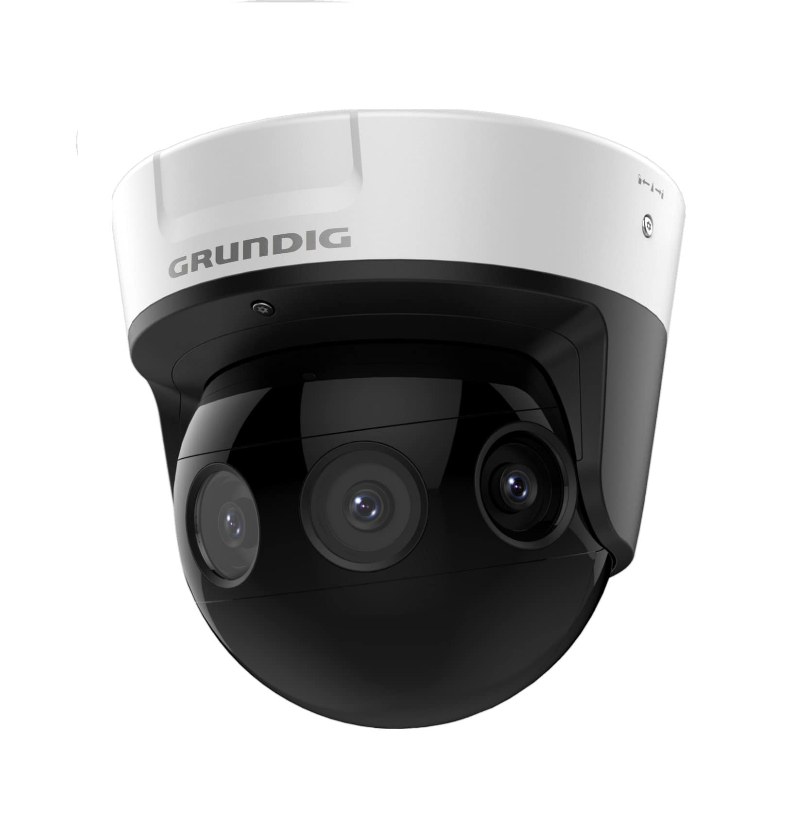 Die GRUNDIG GD-CI-AT30516Q ist eine Multisensor-Panoramakamera (IP) bestehend aus vier Segmentkameras. Die 1/1,8″ CMOS-Sensoren liefern jeweils Bilder in einer Auflösung von bis zu 8MP. Dadurch liefert diese IP-Kamera gegenüber den herkömmlichen Panoramakameras mit Fisheye Objektiv eine bessere Bildqualität. Ausgestattet mit vier 3 mm Objektiven und IR-LEDs (Reichweite bis 20 m) lässt diese Kamera kaum Wünsche offen. Das Gehäuse ist wetter- und vandalismusgeschützt (IP67/IK10). Einstellungen sind über den eingebauten Webserver möglich. Die Spannungsversorgung kann wahlweise über 12 V DC, 24 V AC oder PoE+ erfolgen. Die GD-CI-AT30516Q belegt vier Rekorderkanäle.
