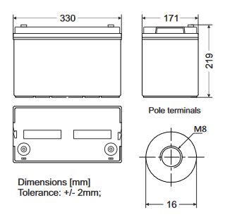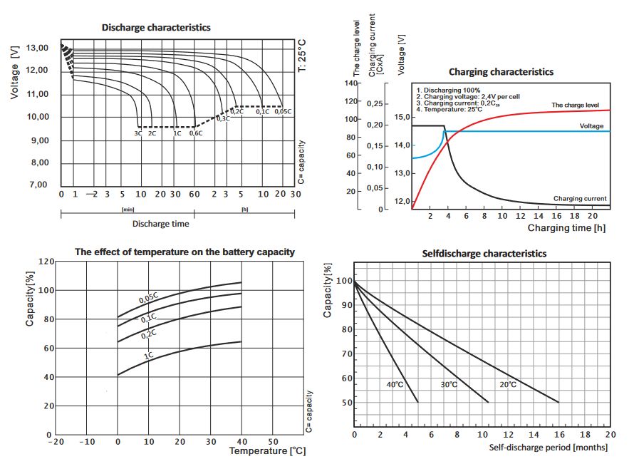 Die Akkus werden in AGM-Technologie (Absorbent Glass Mat) hergestellt; das Elektrolyt wird in der Glasmatte gehalten. Die verwendete Technologie ermöglicht die Installation von Akkumulatoren an Orten mit natürlicher (Schwerkraft-)Belüftung und minimiert den Wartungsaufwand.