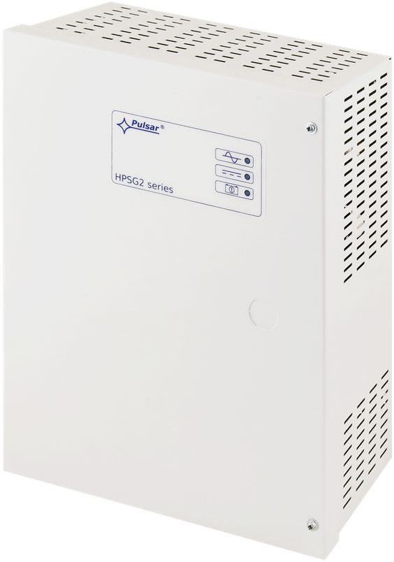 Die Konstruktion des Netzteils basiert auf dem Modul eines Impuls-Netzteils, mit hoher Energie-Leistung, in einem Metallgehäuse (Farbe RAL 9003) und mit Platz für zwei Akkus bis 7Ah/12V. Das HPSG2-24V2A-B wird fertig vorinstalliert in einem sabotagegeschützten Metallgehäuse geliefert.