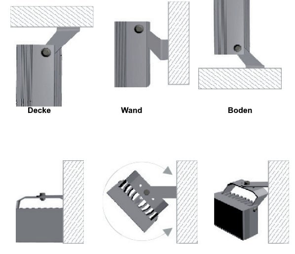 - Wand- oder Deckenmontage