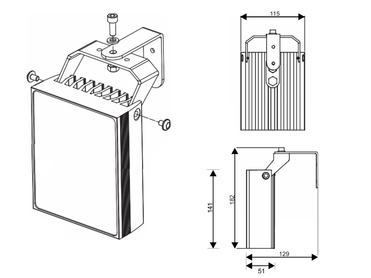 In den IR-Strahlern der IR860-Serie kommen hochwertige “Osram SMD” – Dioden zum Einsatz, die trotz geringem Energieverbrauch eine sehr hohe Lichtintensität erzeugen. Das Gehäuse ist eine Kombination aus besonders modernem Design und einem sehr wirkungsvollen Kühlsystem. Das Schutzglas ist aus dem hochwertigen Material SolarislRTM gefertigt, welches die beste Lichtdurchlässigkeit für Infrarotstrahlung (mindestens 96 %) gewährleistet. Die in den Scheinwerfern verwendete “3M VHB” -Technologie stellt die Dichtigkeit des Geräts sicher und verhindert, dass Feuchtigkeit von außen in das Gehäuse eindringt.