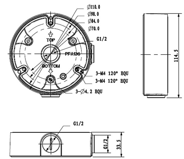 Stabile Anschlussbox für verschiedene LUNA Kameras. Die Funktion des Deckels übernimmt die passende Kamera.