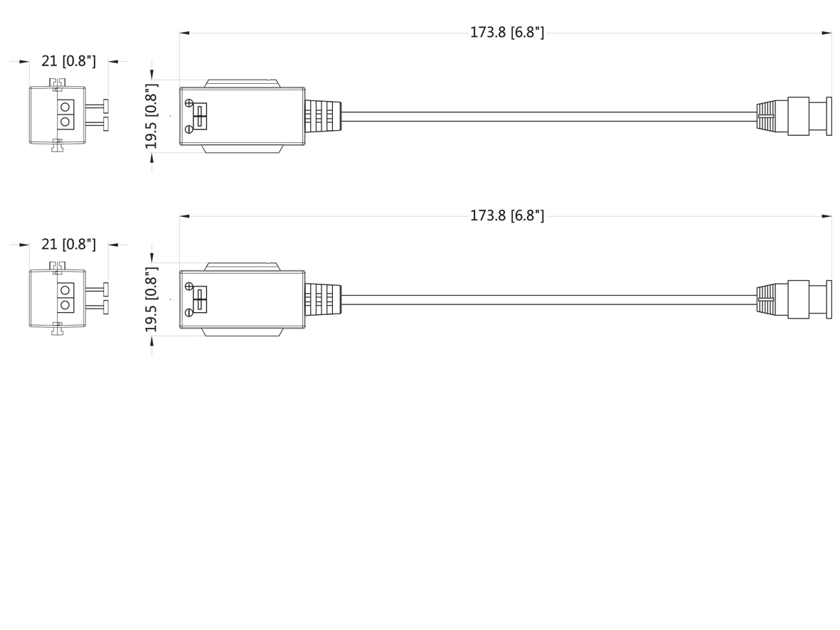 Der LUNA BL01 ist ein Sender/Empfänger-Set für die Übertragung eines analogen Signals (HD) über Zweidraht bis zu 400 Meter (720P) bzw. 250 Meter (1080P) und 180 Meter (4MP/6MP/4K).