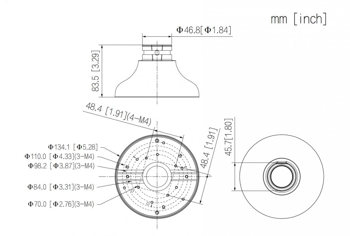 Adapter für Domekameras zur Verbindung von Domen an Wand- oder Deckenhalter. Achtung: erfordert weiteres Zubehör (HA07).