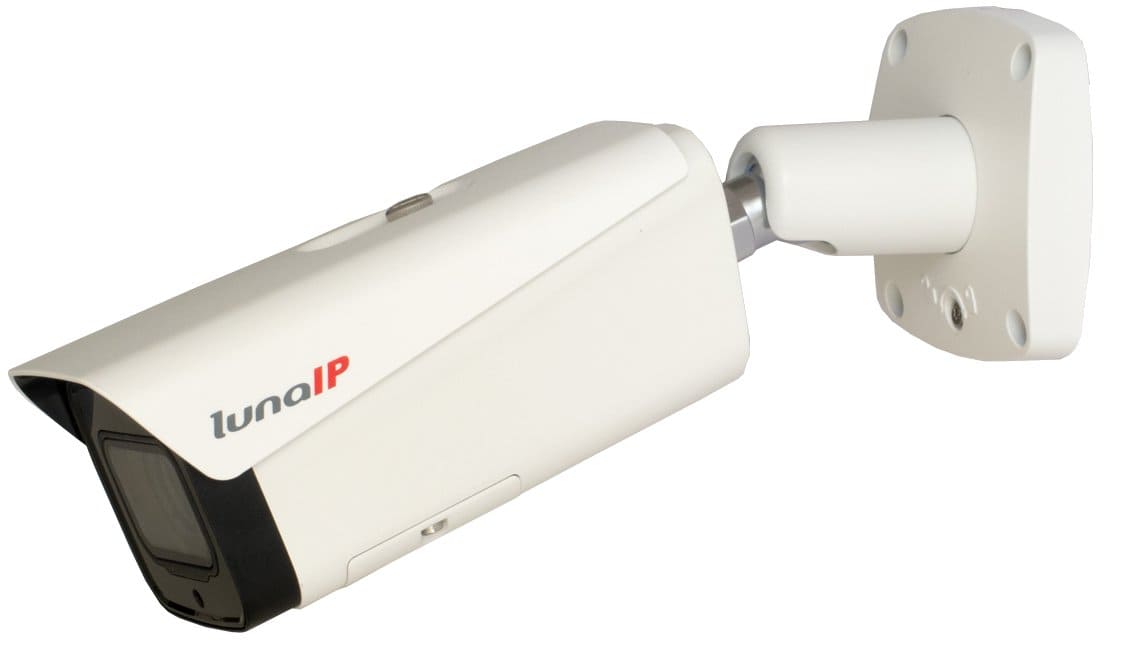 Die LUNA KE5803 v4 ist eine 8 Megapixel IP-Bulletkamera die neben IVS-Funktionen auch über neueste KI-Technologie verfügt. Das Gehäuse mit innenliegender Kabelführung ist wetter- und vandalismusgeschützt (IP67/IK10). Der 1/1,8″ CMOS Sensor liefert eine maximale Auflösung von 3840×2160 px bei 25bps. Die Kamera ist ausgestattet mit einem 2,7-12 mm Motorzoom-Objektiv, IR-LEDS (Reichweite bis 60 m) und einem mechanischen IR Cut Filter (ICR). Die Bilder können über drei unabhängige Streams im H.264(+)/H.265(+)/MJPEG Format abgerufen werden. Die Spannungsversorgung kann wahlweise über 12 V DC oder PoE erfolgen.