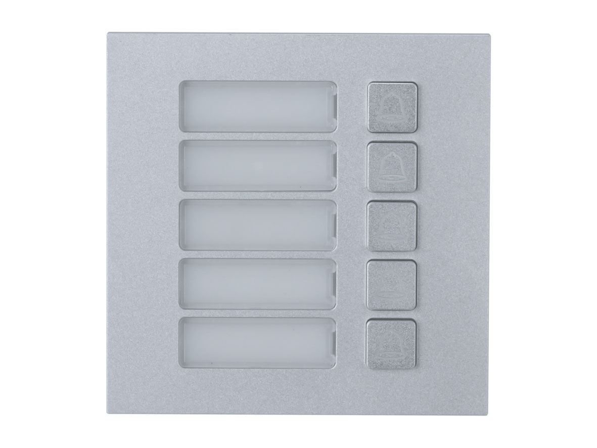 Das LUNA TA5705 ist ein Türsprechanlagenmodul für den Außenbereich (IP65) mit einer Aluminium-Frontplatte und einer Klingeltaste. Es ergänzt das Kamera-Hauptmodul LUNA TS5710. Das LUNA TA5705 ist nach IK07 schlagfest. Eine separate Spannungsversorgung ist nicht nötig, diese erfolgt über den Anschluß zum Hauptmodul.
