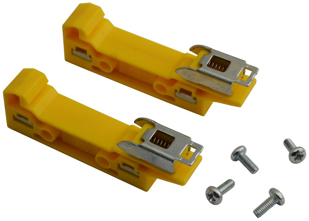 Das PKAZ107 ist ein Montageset für die DIN-Schiene. Im Set enthalten: 2x Halter + 4x Montageschrauben M4x10