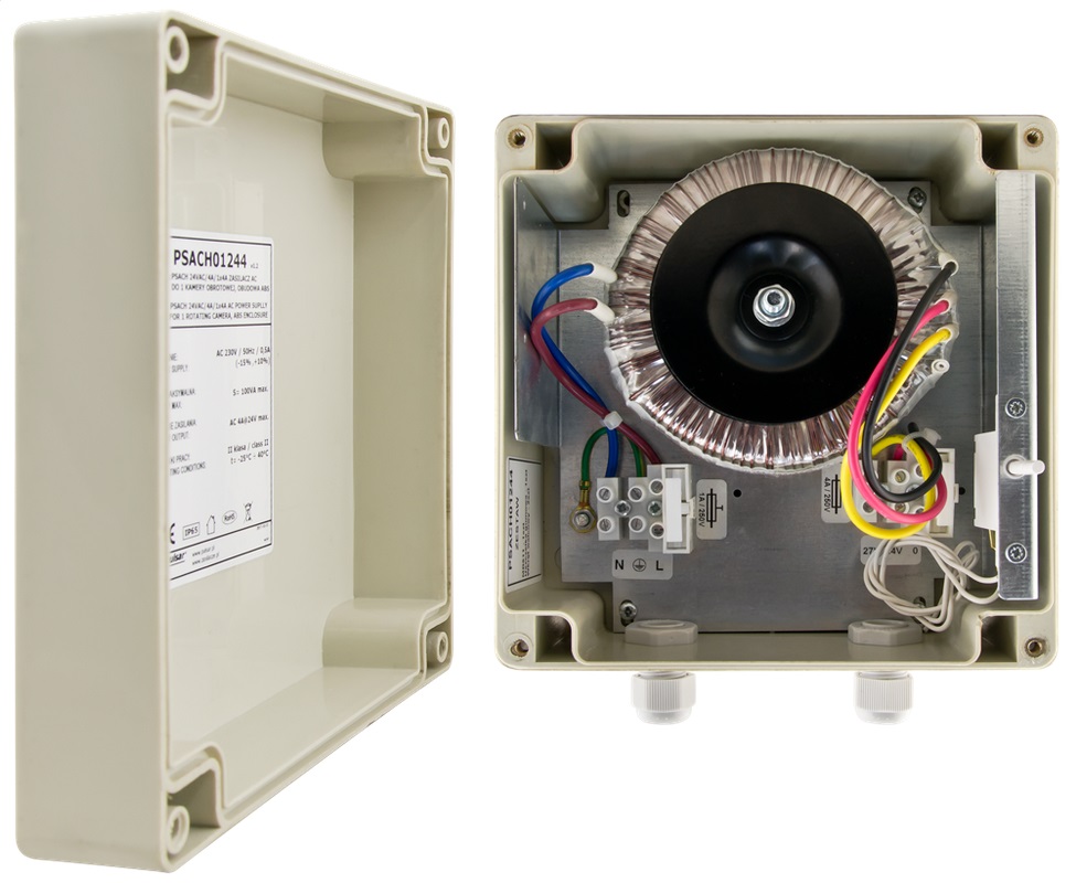 Das PSACH01244 ist ein robustes 24VAC-Netzteil für den Außenbereich und ideal zur Versorgung von PTZ-Kameras und ähnlichem. Durch die kompakte Bauweise kann es platzsparend und einfach installiert werden. Für längere Leitungswege kann die Sekundärspannung von 24V auf 27V erhöht werden. Das Netzteil verfügt über Kurzschluss-, Überspannungs- und thermische Sicherungen und eine Sabotageüberwachung. Das hermetische, luftdichte IP65-Gehäuse trotzt auch widrigsten Wetterverhältnissen. Passende Kabelverschraubungen sind bereits im Lieferumfang enthalten.