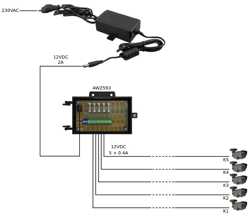 - Stabilisiertes 12 VDC Netzteil