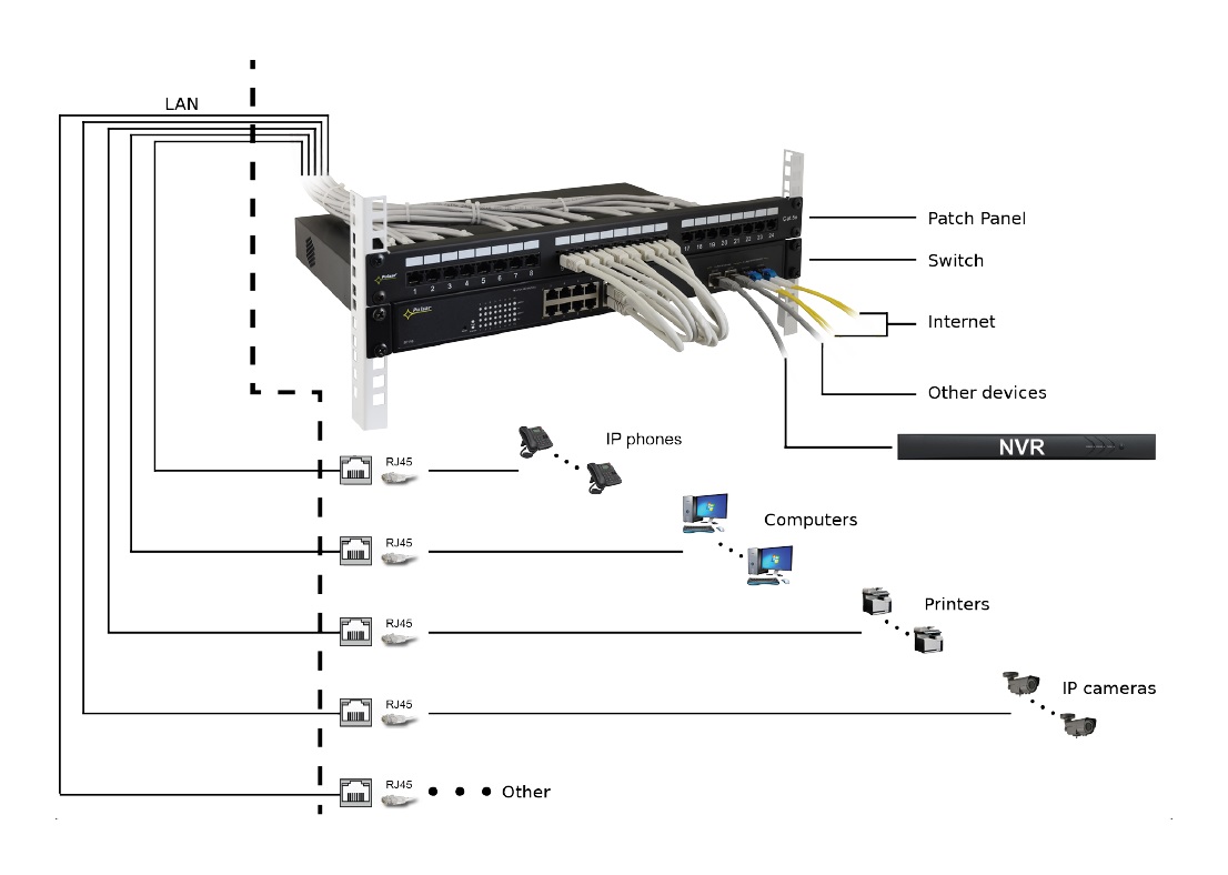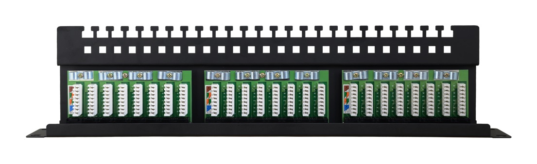 Das RP-U24V5 bildet den Endabschluss in der 19″-Technik für strukturierte Verkabelung. Es stellt 24 Ports für UTP/Cat 5e auf nur 1HE zur Verfügung. Die rückseitig aufgelegten Kabel können sauber auf der Führungs- und Entlastungsschiene fixiert werden, die farbig markierten LSA-Klemmen erleichtern das Anlegen. Die Frontanschlüsse sind fortlaufend und gut leserlich nummeriert. Die 4-Punkt-Befestigung garantiert hohe Haltbarkeit. Das RP-U24V5 wird komplett mit Schrauben, Kabelbinder und Topfmuttern geliefert.