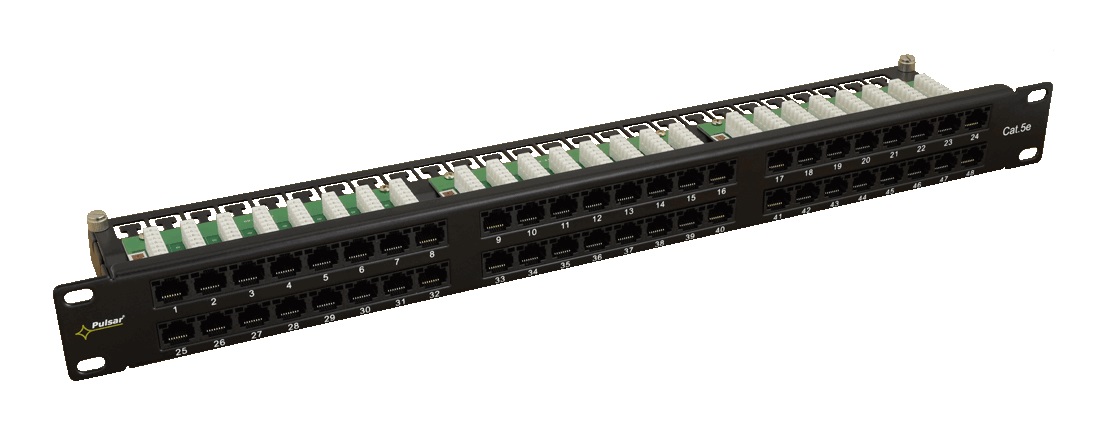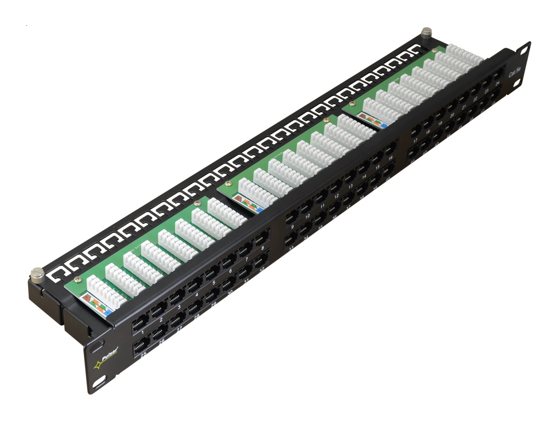 Das RP-U48V5 bildet den Endabschluss in der 19″-Technik für strukturierte Verkabelung. Es stellt 48 Ports für UTP/Cat 5e auf nur 1HE zur Verfügung. Die rückseitig aufgelegten Kabel können sauber auf der Führungs- und Entlastungsschiene fixiert werden, die farbig markierten LSA-Klemmen erleichtern das Anlegen. Die Frontanschlüsse sind fortlaufend und gut leserlich nummeriert. Die 4-Punkt-Befestigung garantiert hohe Haltbarkeit. Das RP-U48V5 wird komplett mit Schrauben, Kabelbinder und Topfmuttern geliefert.