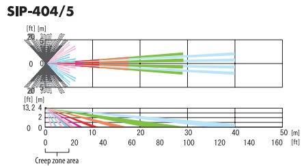 Der SIP-404/5 wurde für den Einsatz in kleinen und mittelgroßen Außenbereichen entwickelt. Er ist mit einem intelligenten Meldesystem ausgestattet das die Empfindlichkeit automatisch an die Umgebungsbedingungen (z. B. Temperatur, Helligkeit… ) anpasst. Dank der Mechanismen zur einfachen Installation kann der zu überwachende Bereich bei der Einrichtung genau festgelegt werden, was die Zuverlässigkeit im Betrieb deutlich erhöht. Der optionale AVF-1 Bereichssucher ermöglicht bei der Installation eine bildliche Darstellung des überwachten Bereichs. Die Geräte dieser Serie sind an der Unterseite mit einem weiteren PIR-Sensor zur Erfassung des Bereichs direkt unter dem Gerät ausgestattet. Der untere PIR-Sensor verfügt über einen unabhängigen, vom Hauptsensor getrennten, Ausgang.