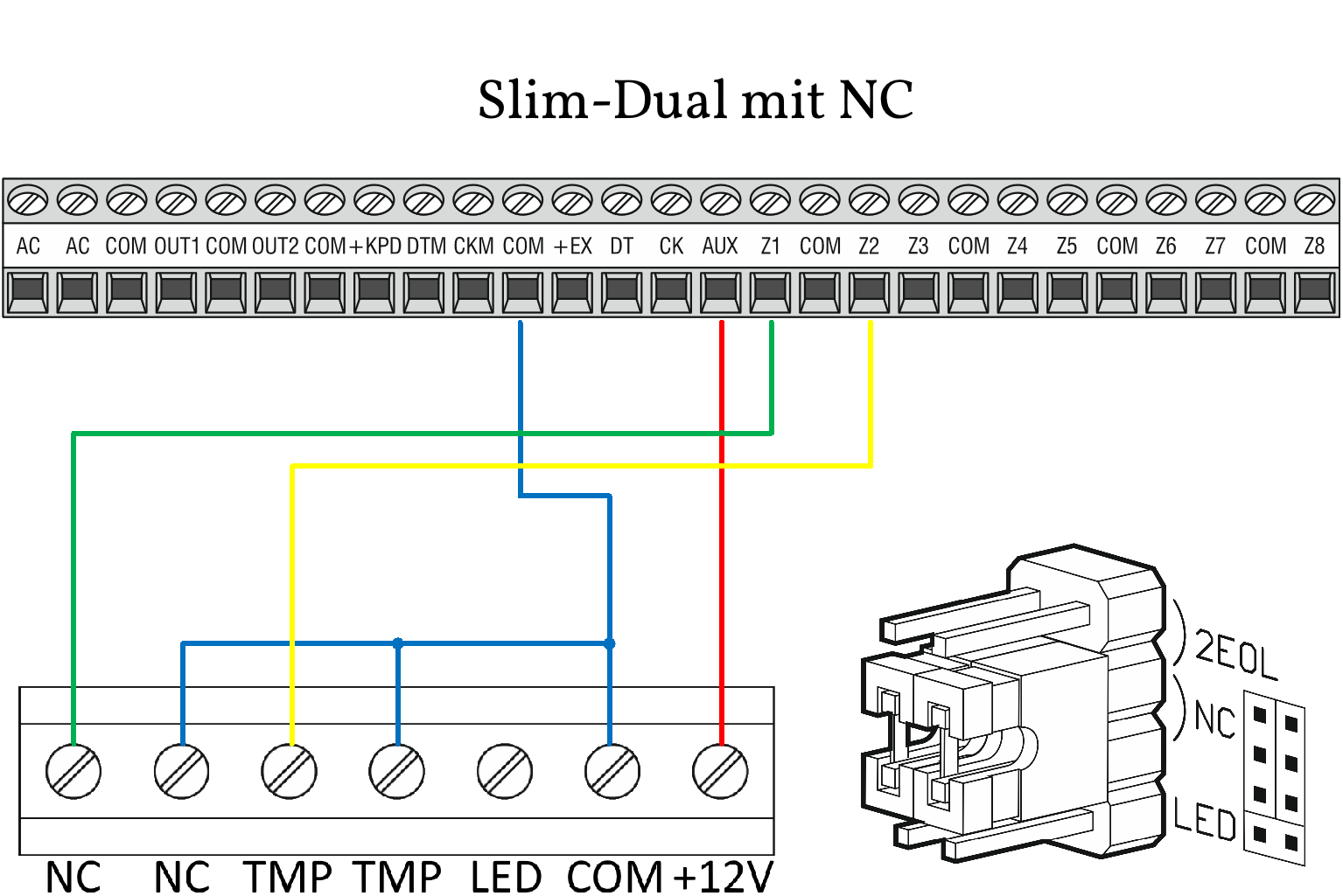 Der PIR-Bewegungsmelder SLIM-PIR-PET mit Tierimmunität ist EN 50131 Grade 2 konform. Er verfügt über einen integrierten Abschlusswiderstand (1,1 kΩ) sowie über eine abschaltbare Gehtest-Anzeige. Hierbei kann die Farbe der LED-Anzeige ausgewählt werden. Es stehen für dieses Modell vier verschiedene Farben (blau, rot, violett und weiß) zur Verfügung. Der Melder wird standardmäßig mit einer Weitwinkellinse (90°) ausgeliefert. Optional sind Wechsellinsen (Korridor oder Vorhang) erhältlich.
