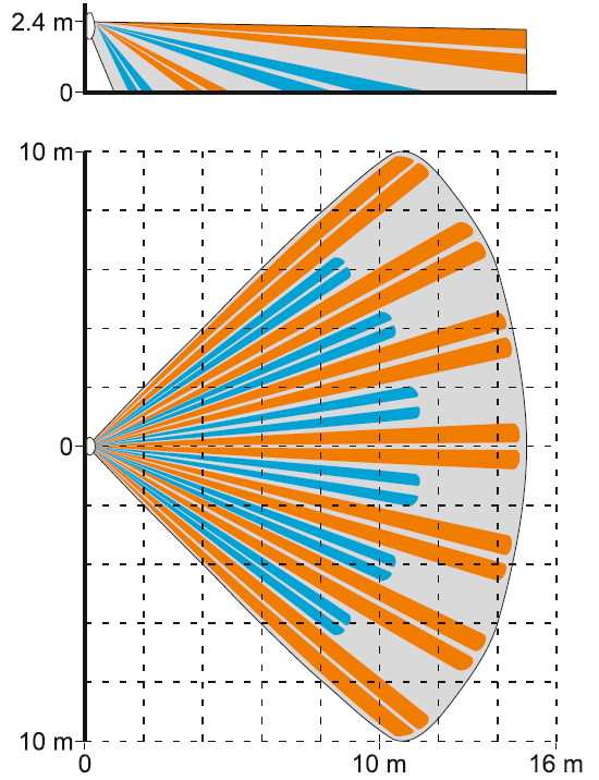 Der PIR-Bewegungsmelder SLIM-PIR ist EN 50131 Grade 2 konform. Er verfügt über einen integrierten Abschlusswiderstand (1,1 kΩ) sowie über eine abschaltbare Gehtest-Anzeige. Hierbei kann die Farbe der LED-Anzeige ausgewählt werden. Es stehen für dieses Modell vier verschiedene Farben (blau, rot, violett und weiß) zur Verfügung. Der Melder wird standardmäßig mit einer Weitwinkellinse (90°) ausgeliefert. Optional sind Wechsellinsen (Korridor oder Vorhang) erhältlich.