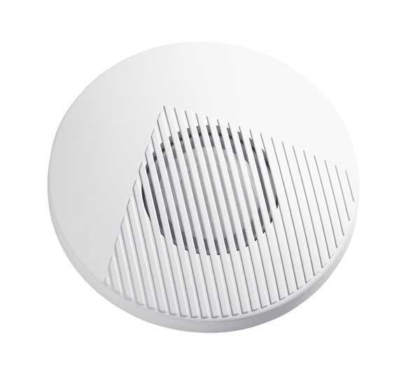Kleine formschöne Innensirene. Typische Anwendungen für Haus- und Feueralarm im Büro-, Gewerbe- und Privatbereich. Es können drei verschiedene Alarmtöne eingestellt werden.