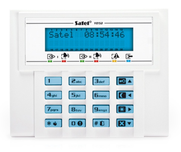 Das VERSA-LCD-BL Klartext-Bedienteil dient zur Steuerung und Bedienung der VERSA Alarmzentralen. Das gut lesbare LCD-Display gibt dem Benutzer alle systemrelevanten Informationen. Die zusätzlichen LEDs zeigen den Zustand der Bereiche und des Systems an. Die schnelle Aktivierung des Scharf-/Unscharfmodus mittels Funktionstasten sowie die Auslösung von Alarmen (ÜBERFALL, BRAND, NOTRUF) über die Tastatur bieten eine sehr komfortable Nutzung des Systems. Das Bedienteil verfügt über eine Hintergrundbeleuchtung des Displays und der Tastatur. Es erfolgt eine akustische Signalisierung von gewählten Ereignissen im System. Ebenfalls signalisiert das Bedienteil das Fehlen der Kommunikation mit der Zentrale.