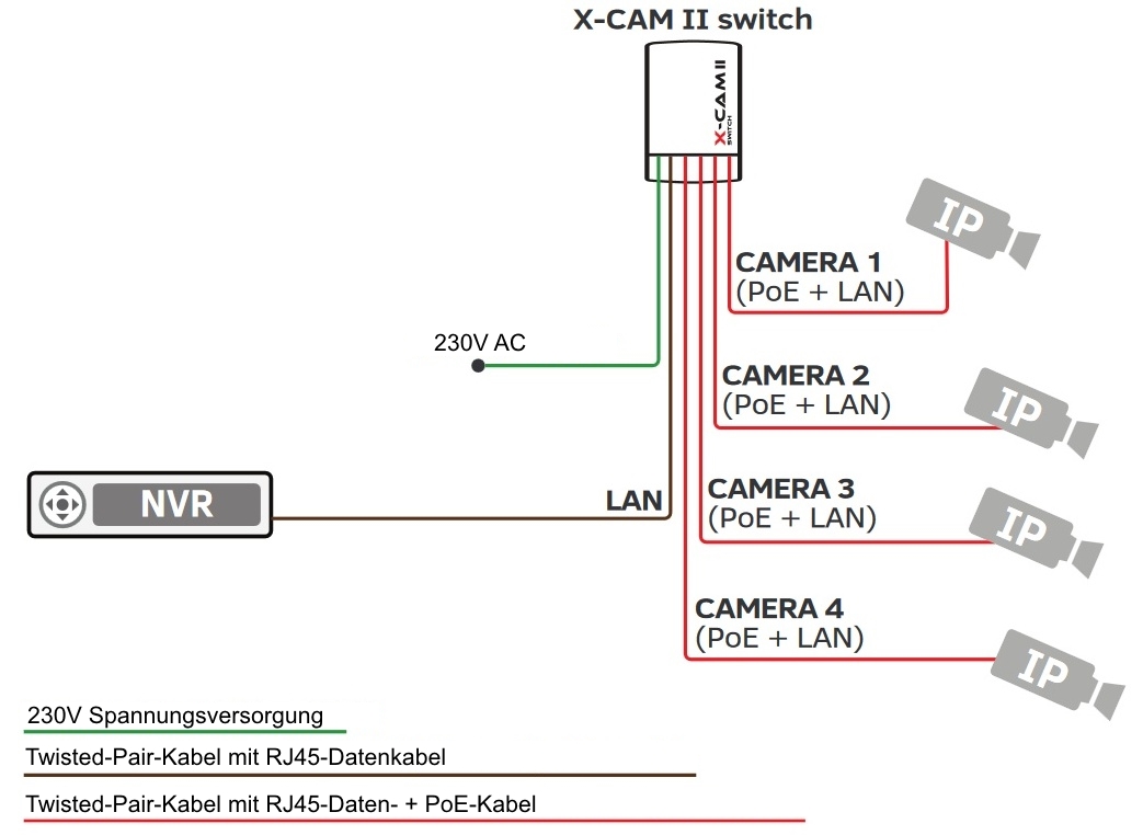 - für bis zu 4 IP-Kameras geeignet